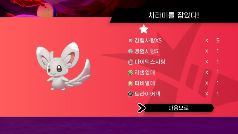 맥스레이드 배틀에서 승리를 하면(포획하지 않아도 됨)
