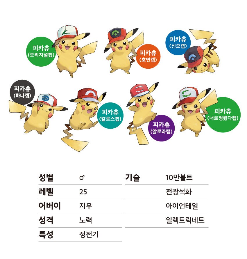 모든 지우의 피카츄의 스펙이 같은 것인지는 모르겠지만