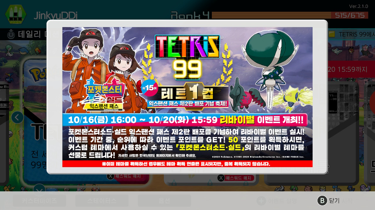 테트리스 99 이벤트 테마 리뷰도 하였습니다.