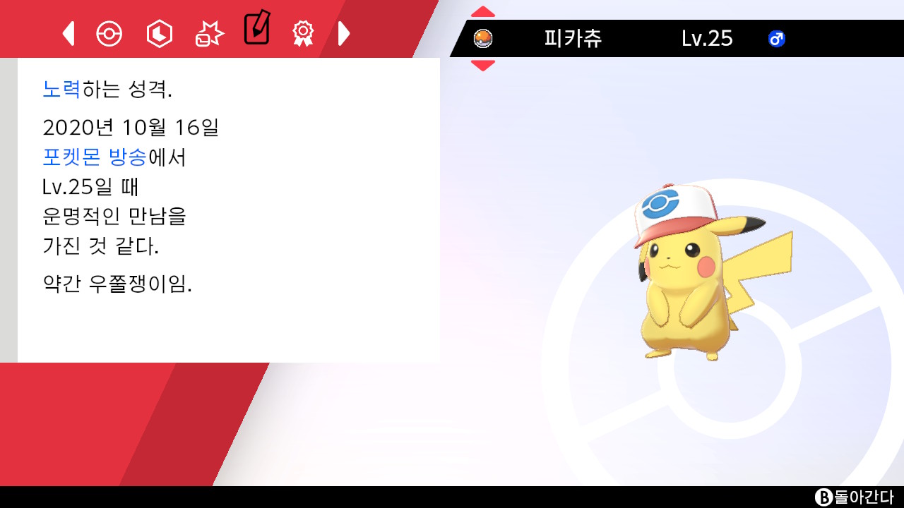 다음 선물로 받게 되는 피카츄는 칼로스캡 피카츄이며