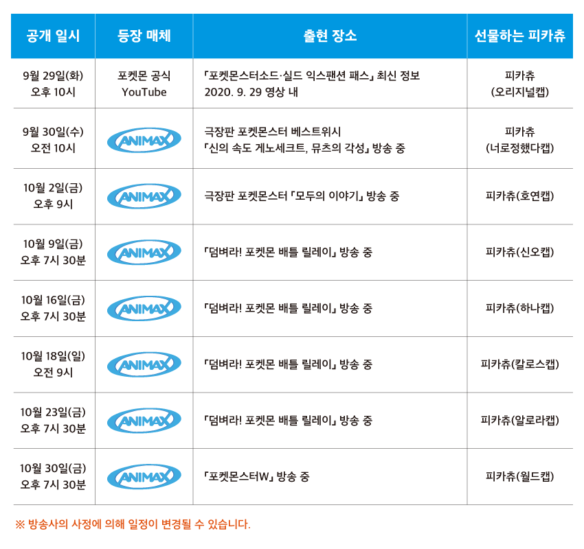 새로운 모자를 쓴 피카츄의 지우(?)가 18시 55분에 애니메이션에 나온다